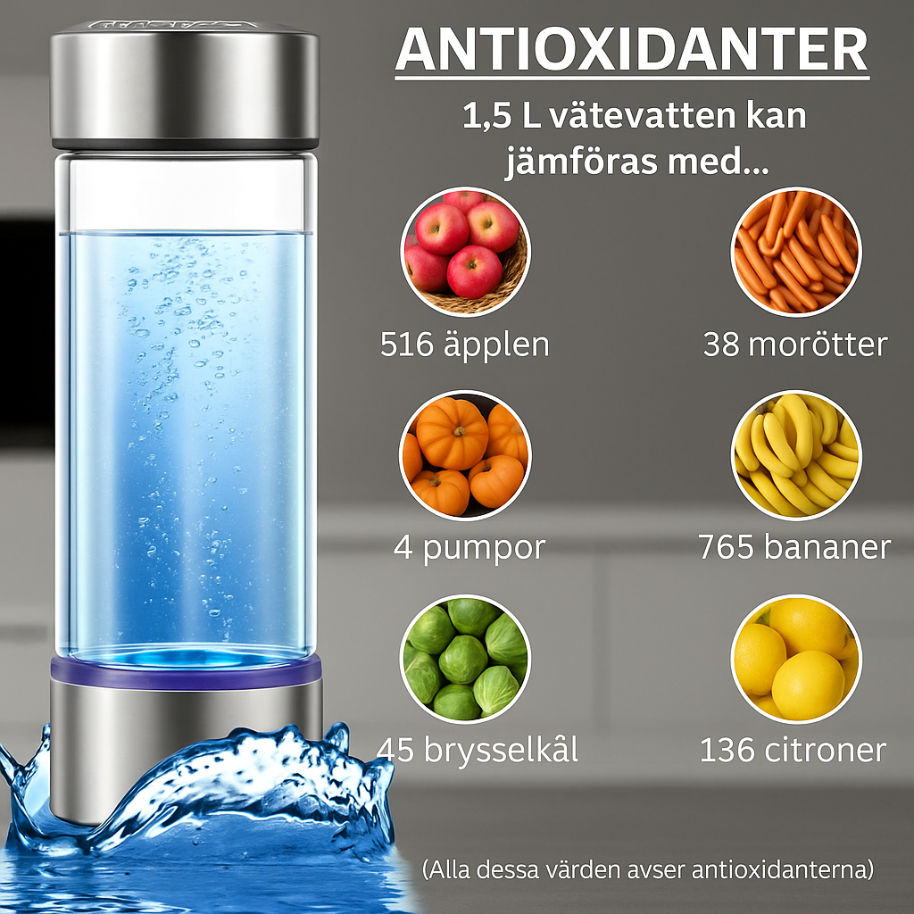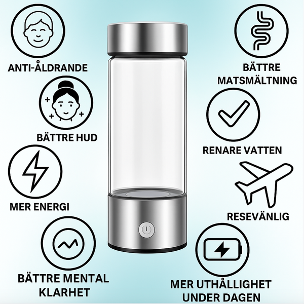 - Berikar varje klunk med väte (H₂) för friskare känsla